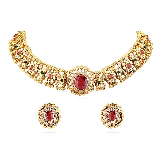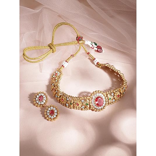 Rubans Beaded Design & Cubic Zirconia Embellishments Necklace Set for Women & Girls | Handcrafted Jewelry | Ideal for Weddings, Ethnic Wear & Festive Occasions